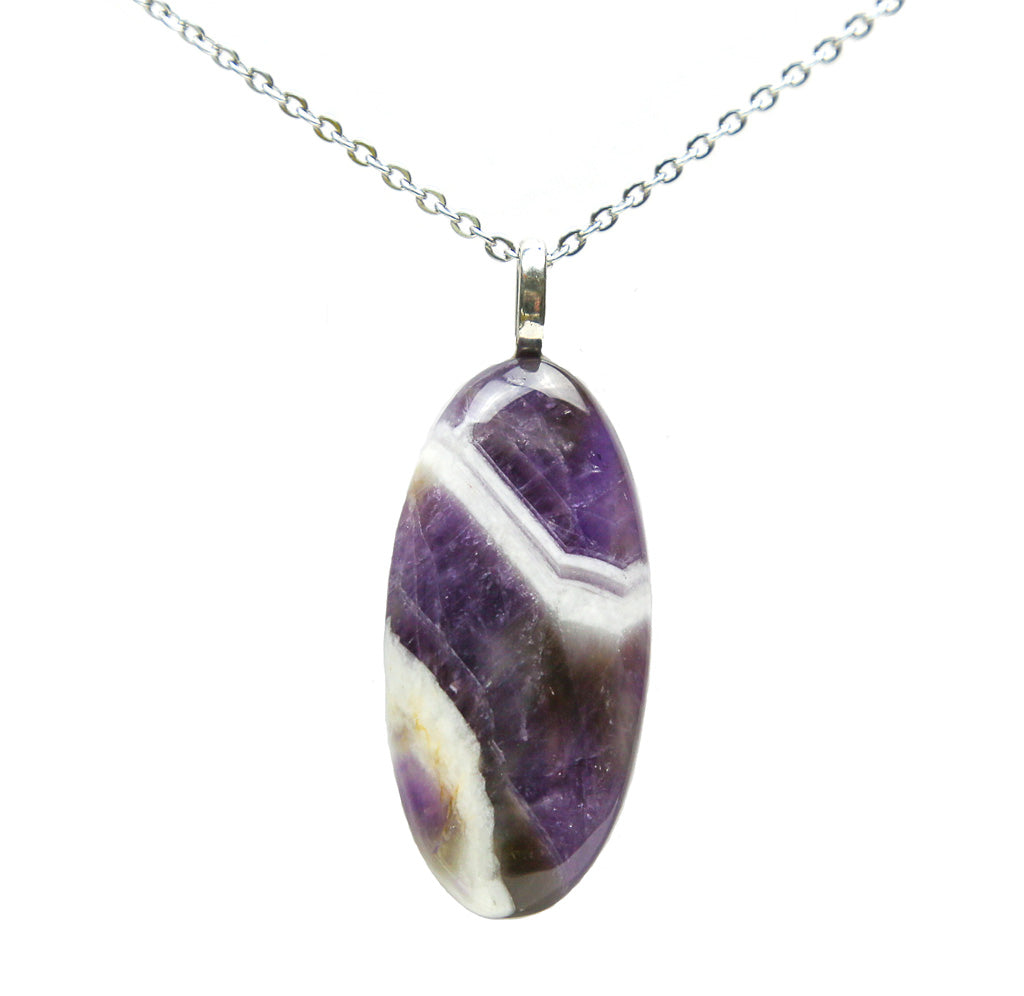 The handcrafted necklace features carefully selected Chevron Amethyst, expertly cut and polished to highlight the stone's innate beauty. Each natural stone features its own individual patterns and color variations, ensuring that you'll have a one-of-a-kind piece.