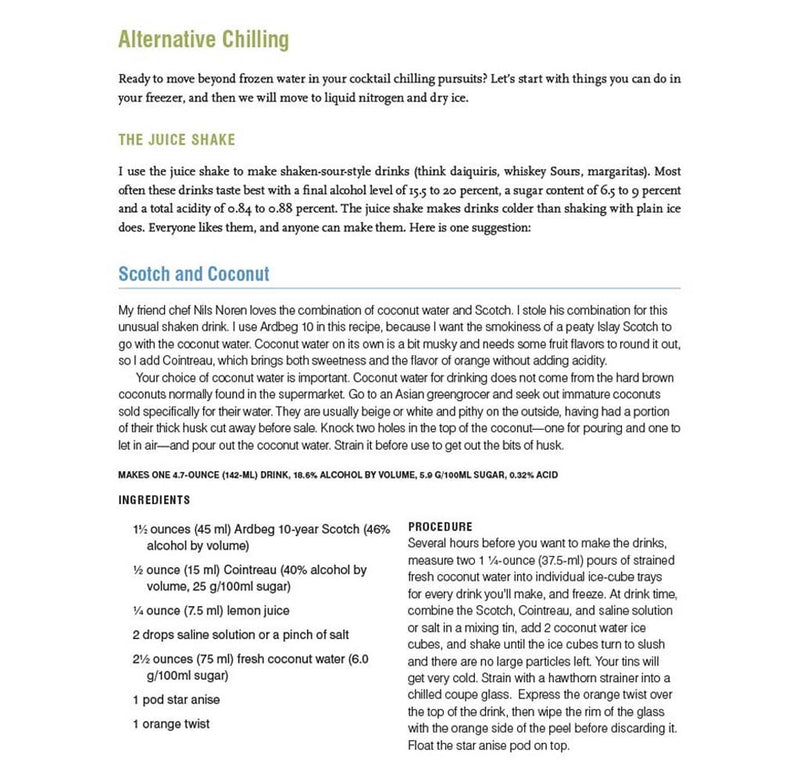 Years of rigorous experimentation and study―ruined attempts and inspired solutions―have yielded the recipes and techniques found in these pages. How ice forms and how to make crystal-clear cubes in your freezer―and then progresses into advanced techniques like clarifying cloudy lime juice with enzymes, nitro-muddling fresh basil to prevent browning, and infusing vodka with coffee, orange, or peppercorns