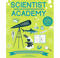 Packed full of great illustrations, fun facts, and absorbing activities, Scientist Academy introduces and then guides young readers through five different types of scientists—laboratory scientist, investigative scientist, space scientist, earth scientist, and life scientist. Practical projects, each carefully designed to introduce the types of skills required by the different real-life scientists, help kids pick up the basics in a fun, hands-on way. Create a pendulum, investigate a crime scene, uncover some fossils, and study the solar system—the sky’s the limit! The “Science File” section contains all sorts of goodies, such as Science Pairs game cards, a periodic table poster, and zoology stickers.