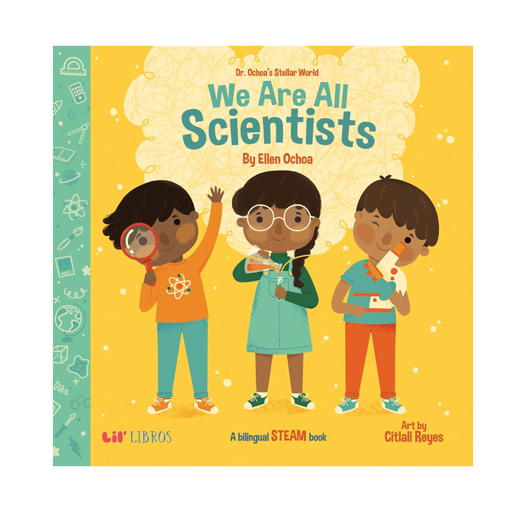 In We Are All Scientists / Todos somos científicos, Dr. Ellen Ochoa explores how children have an innate drive for discovery. Science is all around us, and children are born with a keen desire to explore, making them natural scientists.